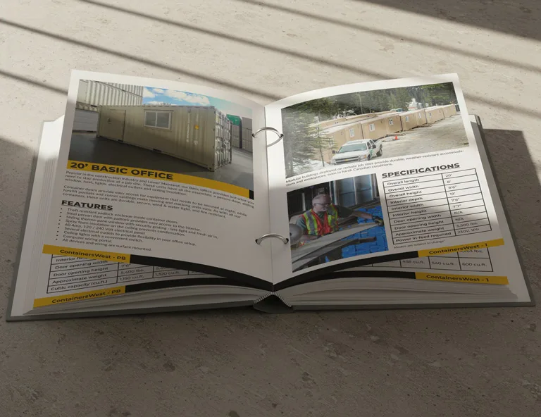 Designed a clean and cohesive print catalog that combines layout design, photo editing, and technical data organization. This project improved brand consistency, enhanced visual flow, and supported better sales outcomes for one of Canada’s leading container providers.